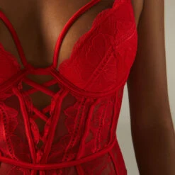 Un body infiniment sensuel muni d’armatures façon guĂŞpière pour sublimer les courbes et pimenter sa Saint-Valentin. On craque pour cette dentelle iconique rouge, et ce dĂ©licat jeu de laçage so sexy.